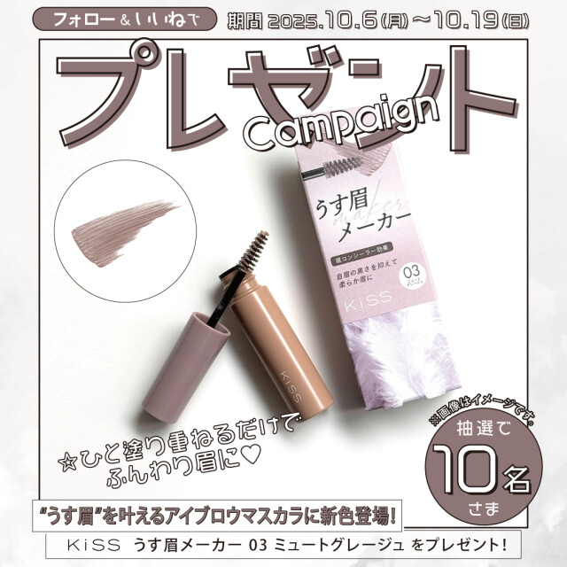 ②キャンペーン期間中 「キス うす眉メーカー03 ミュートグレージュ 」のプレゼントキャンペーンの投稿をいいね! する