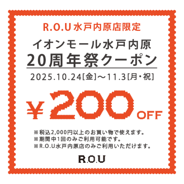 R.O.U 水戸内原店限定でイオンのトータルアプリ【iAEON】アプリでクーポン配信をいたします!