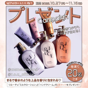 リルーチェ「スキンミルクローション」と「パフュームハンドクリーム」を2点セットで抽選で20名さまにプレゼント☆彡