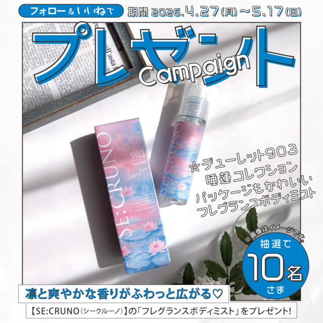 ②キャンペーン期間中「SE:CRUNO(シークルーノ) フレグランスボディミスト デューレット903」のプレゼントキャンペーンの投稿をいいね!する
