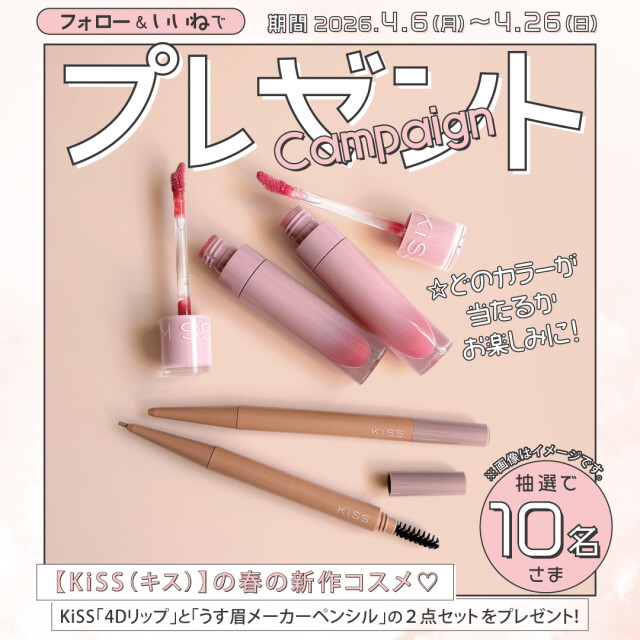 ②キャンペーン期間中KiSS「4Dリップ」と「うす眉メーカーペンシル」のプレゼントキャンペーンの投稿をいいね!する