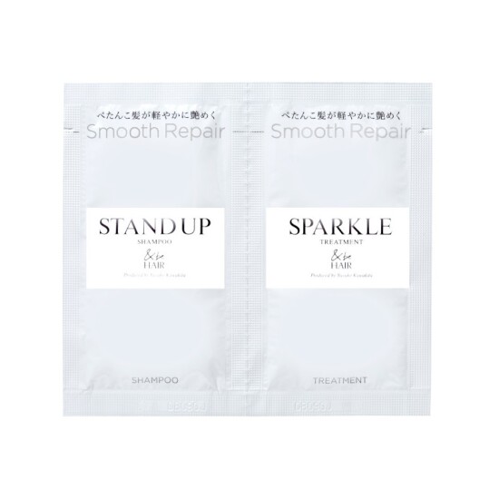 スタンドアップシャンプー(10ml)とスパークルトリートメント L(10g)がセットになったトライアルサシェ(お試し用)です。