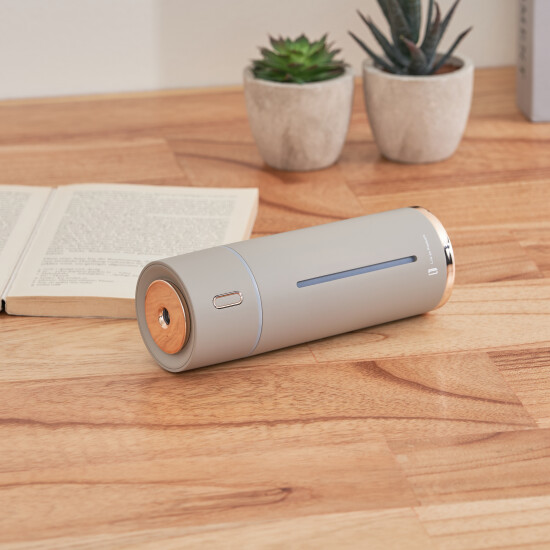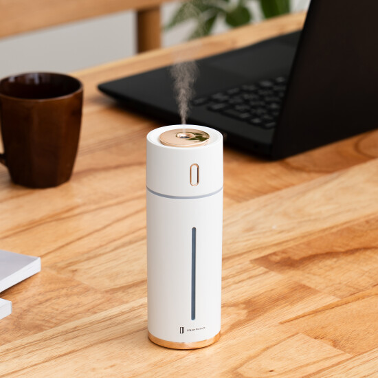冬の暖房や夏のエアコンによる乾燥対策にぴったりのコンパクト加湿器。スリムなデザインでデスク上でも場所を取らず、充電式だから持ち運びも簡単。お部屋はもちろん、乾燥しやすい車内でも活躍します。