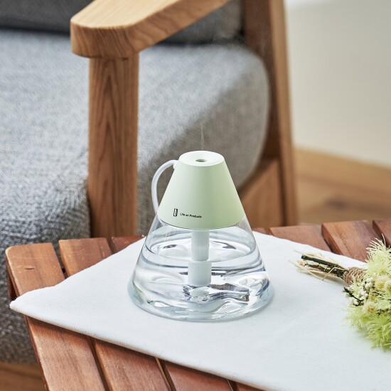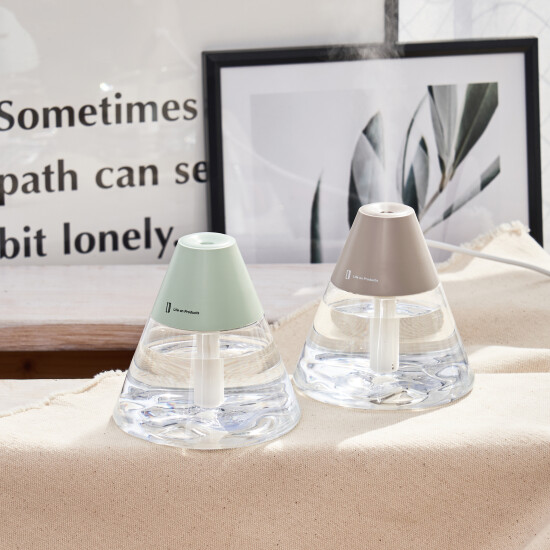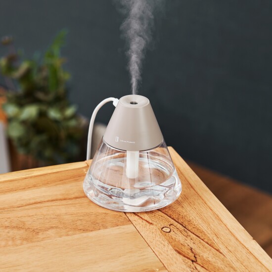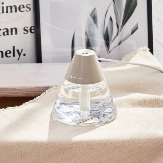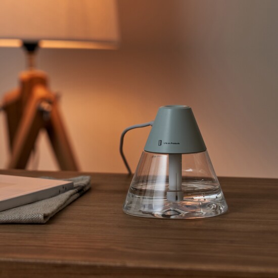 円錐型のフォルムが印象的なコンパクト加湿器。小さめサイズで置き場所を選ばず、ペールトーンの色合いがやさしく空間にマッチします。7色に変化するLEDライト付きで、気分に合わせて色の固定も楽しめます。