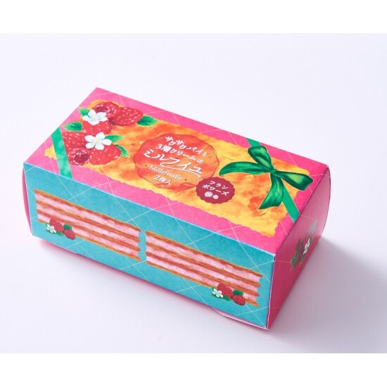 国産小麦100%のパイ生地に、バニラとフランボワーズの2種のクリームをサンドしたミルフイユ。