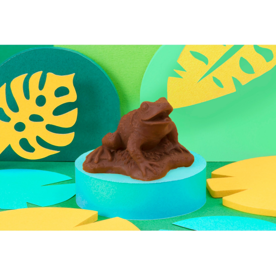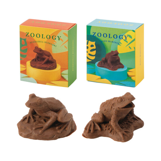 今にもぴょんと跳ねてしまいそうな程リアルなカエルチョコ。ヒキガエルとカジカガエルの2種類あります。