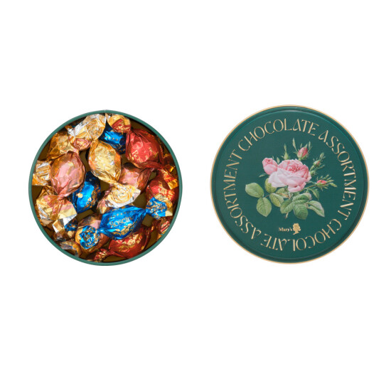 デザインを一新し、より華やかで特別感のあるパッケージにリニューアルしました。キラキラと輝く個包装に包まれた4種類のチョコレート。ピスタチオ、ストロベリー、紅茶、そしてミルクとスイートふたつのチョコレートを一度に味わえるダブルチョコレートを、ころんと丸いひと口サイズに仕立てました。