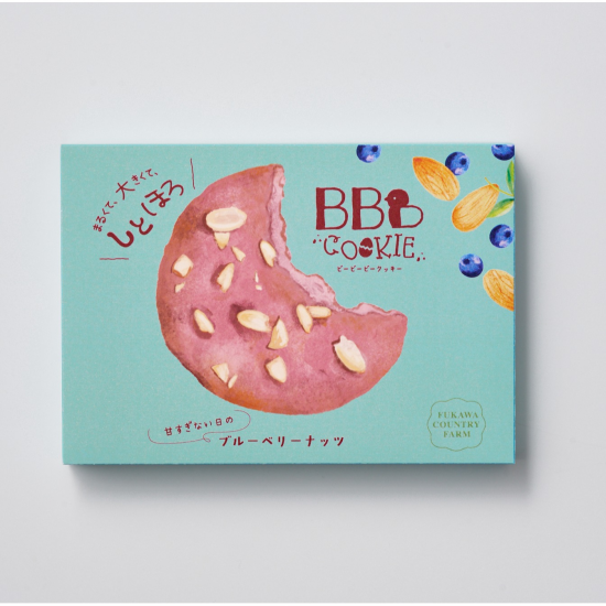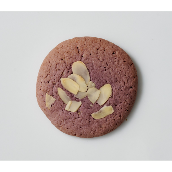 直径約8.5cm、しっとりほろほろ食感の大判クッキー。ブルーベリーの生地にアーモンドスライスをトッピングした1枚。ほおばりたいけど甘さ控えめな気分の日にピッタリです。