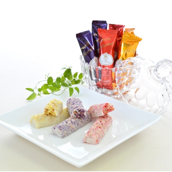 3種類のフルーツを贅沢に使用したサクサクのクランチ生地をホワイトチョコレートでコーティング。こだわり抜いた上品な美味しさと、癖になるサクサク食感が楽しめます。贈り物にぴったりな赤いリボンがポイントのラッピングが可愛らしいです。