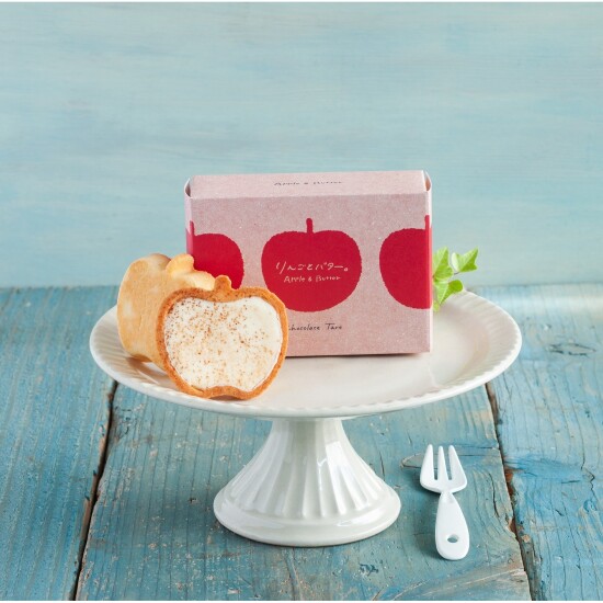 国産りんごを使用したチョコレートとホワイトチョコレートを、りんごの形をしたタルト生地に流し込み、最後にシナモンを振りかけた可愛らしいチョコタルトです。