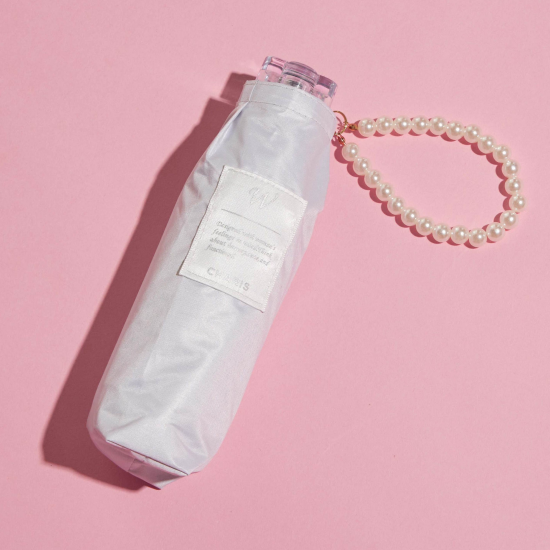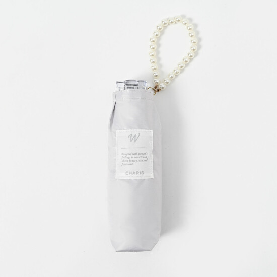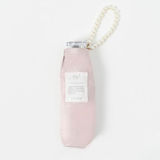 クリアのお花型の持ち手とミニサイズがまるでコスメボトルみたいな折りたたみ傘。