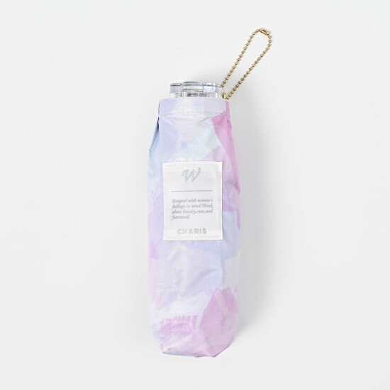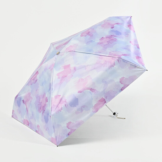 クリアのお花型の持ち手とミニサイズがまるでコスメボトルみたいな折りたたみ傘。