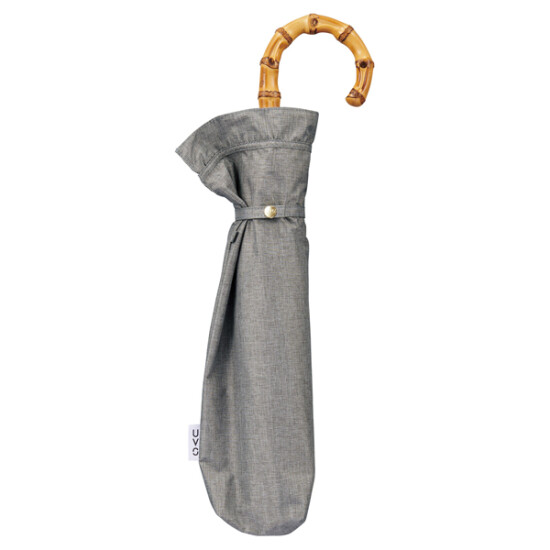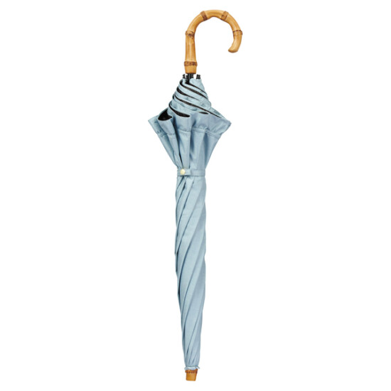 留めひもが内側と外側の両方にあるため、長傘としても持ち運ぶことが可能です。